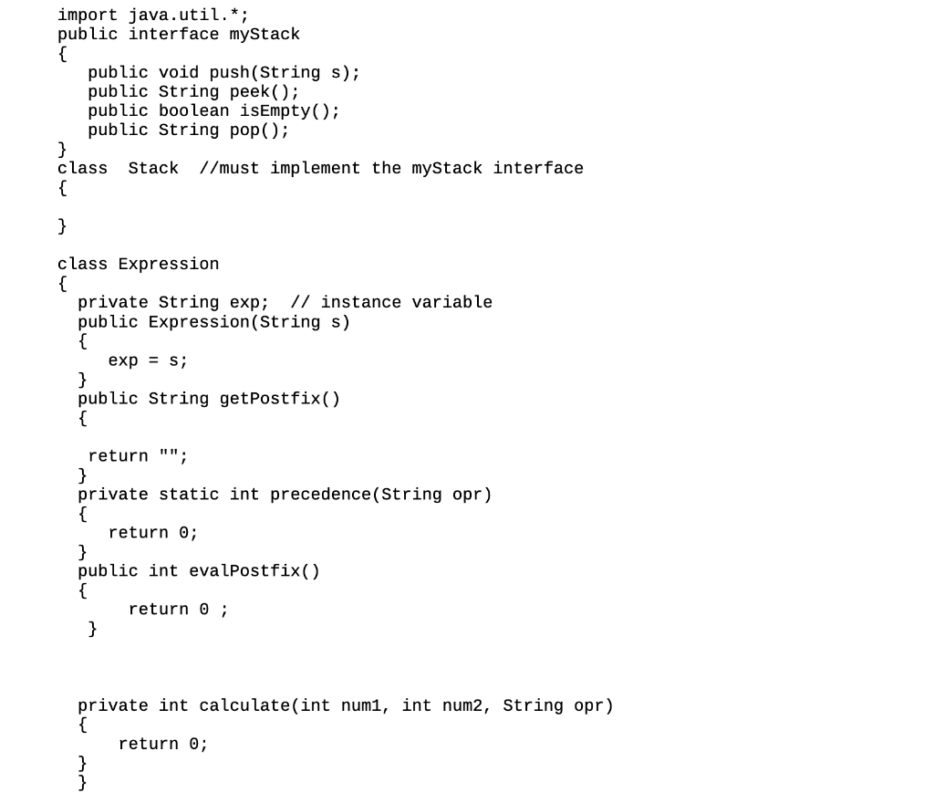 Solved Java Must Not Use Java Api Java Util Stack A Chegg Com